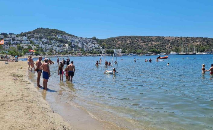 Muğla’nın Bodrum ilçesinde hava sıcaklığı 38 dereceye çıktı, sahillerde yoğunluk yaşandı.