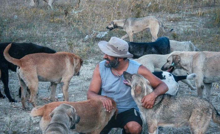 Bursa’da bir hayvanseverin beslediği yüzlerce köpek etrafını sarıp ona sevgi gösterisinde bulunuyor.