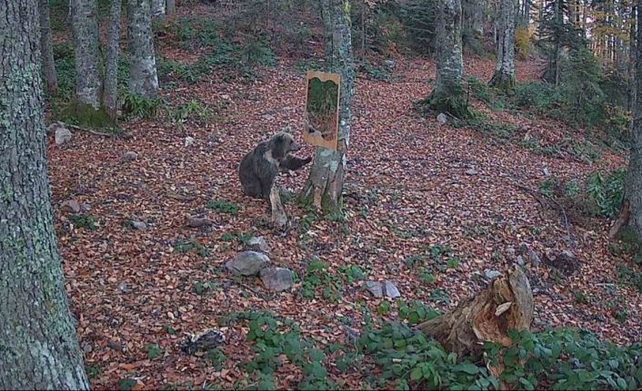 Ormana ayna konularak yapılan çalışmada, yaban hayvanlarının ayna karşısında verdikleri tepkiler ve davranışları yüzleri güldürdü. Özellikle aynada kendini gören ayının yaşadığı şok dikkatleri çekti.