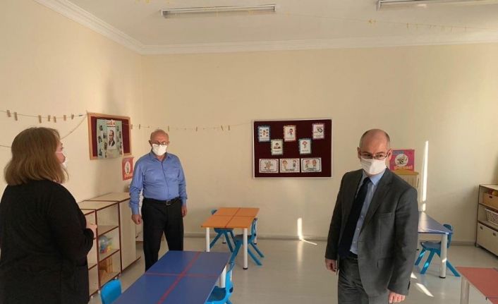 Bu kapsamda Halime Hatun Anaokulu ve Vilayetler Hizmet Birliği Anaokullarını ziyaret eden Yaman ve Demir, Okul Müdürleri Buket Tunalı ve Ömer Oğuz Yıldırım’dan yapılan hazırlık çalışmaları ile alakalı bilgi alarak derslikleri gezdiler. İlçe Milli Eğitim Müdürü Mahmut Demir, Pazartesi günü başlayacak kademeli eğitim öncesinde ilçedeki okullarda gerekli çalışmaların tamamlandığını kaydetti. Demir, “Milli Eğitim Bakanlığımızın talimatları doğrultusunda 21 Eylül’de yüz yüze eğitim öğretime okul öncesi öğrencileri ve ana sınıfı öğrencileriyle velilerinin rızası doğrultusunda başlayacağız. İlk uyum haftasında bir gün, ikinci uyum haftasında 2 gün okul olacak. 3.’üncü haftanın sonunda diğer kademelerde ve sınıflarda yüz yüze eğitim öğretime başlama konusu yeniden değerlendirilecek. Veliler isterlerse öğrencilerini yüz yüze eğitime göndermeyebilecekler. Öğrenci uzaktan eğitime devam edecek ve devamsız sayılmayacak. Sınıf mevcudu yüz yüze eğitim için gruplara ayrılarak azaltılacak. Çocukların okulda kalış süreleri kısaltılacak. Eğitim, yüz yüze eğitime ek olarak uzaktan eğitim yolu ile devam edebilecek. Birinci sınıf öğrencileri seyreltilmiş sınıflarda sosyal mesafeli temassız oyun oynayacak. Bu süreci öğretmenler omuzlayacak. 1.’inci sınıf öğrencilerine EBA’da uzaktan eğitimi sevdirebilmek için oyun tabanlı dijital içeriklerde hazırlandı. Biz de İlçe olarak Bakanlığımızın talimatlarına uygun olarak çalışmalarımızı tamamladık. Pazartesi gününden itibaren okullarımızın kademeli olarak açılması yönündeki hazırlığımız tamamdır” dedi.