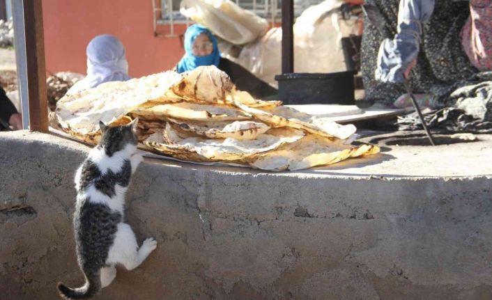 Elazığ’da kadınların imece usulü kış hazırlık telaşı başladı. Günün ilk ışıklarıyla yakılan tandırda pişirilen ekmeklere ulaşmak isteyen kedinin sevimli halleri gülümsetti.