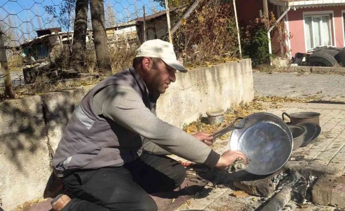 Bursalı kalaycı ustası Cengiz Özkaraç, babası ve dedesinden öğrendiği kalaycılık mesleğini yaşatmak amacıyla il ve ilçeleri gezerek bakır mutfak eşyaları kalaylıyor.
