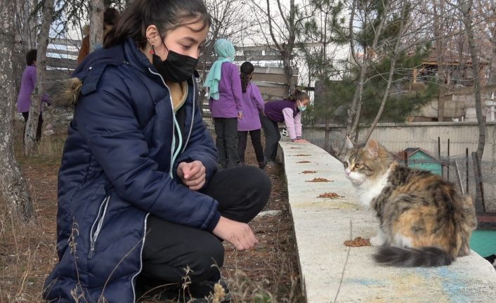 Çankırı’da 100 çocuğun eğitim gördüğü 30 Ağustos Ortaokulunda, pandemi sürecinden önce yürütülen "Hayvan Dostu Okul" projesi kapsamında sahiplenilen kediler, öğrencilere hayvan sevgisini aşılıyor. "Hayvan Dostu Okul" projesinin sonlanması sonrasında, okuldaki kedilerin bakımına devam edildi. Öğrenci ve öğretmenlerin sahiplendiği 6 kedi, kısa sürede okulun maskotu haline geldi. Okul bahçesinde yapılan kulübelerde soğuktan korunan kediler, öğrenci ve öğretmenler tarafından besleniliyor. Kedilere düzenli olarak mama ve su veren öğrenciler, ders aralarında ise soluğu bahçedeki kedilerin yanında alıyor. Öğrenciler, kedileri sevmek için adeta birbirileriyle yarışıyor. Öğrencilere hayvan sevgisini kazandıran kedilerin, bakım ve mama masrafları ise okul personeli tarafından karşılanıyor.