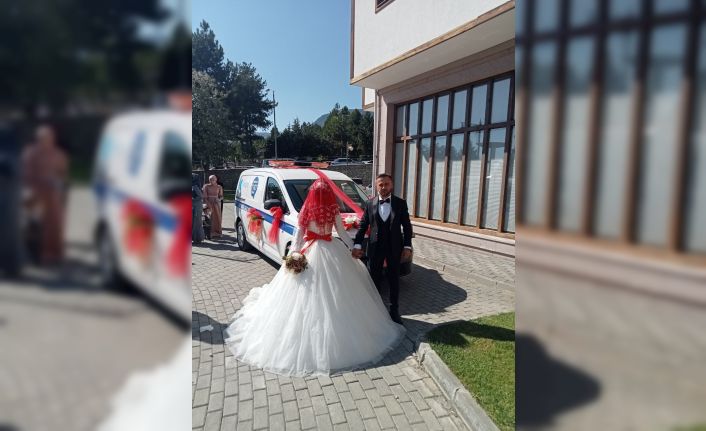 Karabük’te doğalgaz firmasında çalışan damat, düğün arabasını da firmadaki araçtan yaparak, gelin almaya gitti.