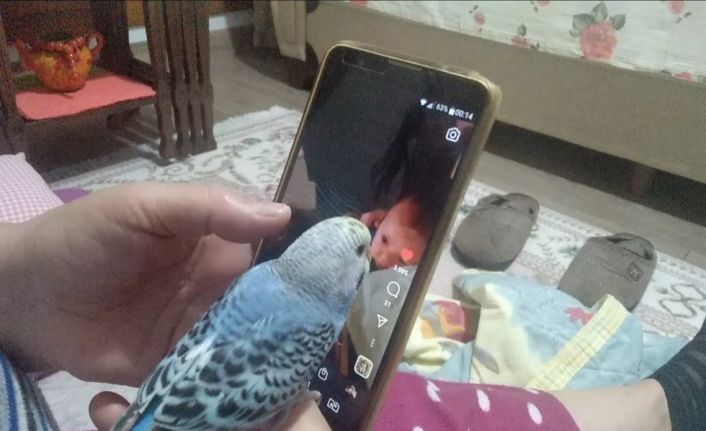 Elazığ’da ’Paşa’ isimli muhabbet kuşu, sahibi ile birlikte her gün düzenli olarak sosyal medya videolarını izliyor. Videoları büyük bir dikkatle izleyen ’Paşa’, izlediği videoları gagasıyla bir kaç kere ekrana dokunup beğenmeyi ihmal etmiyor.