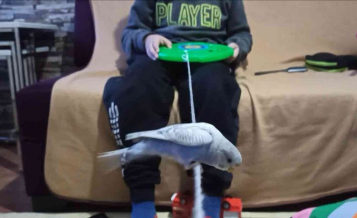 Bursa’da çocuklara hayvan sevgisi için alınan muhabbet kuşu konuşamıyor, ama her türlü oyuna katılıyor. Yapboz, balon ve tablet oyunlarında evin çocuklarıyla bir olan Maviş, ip üzerinde cambazlıktan da geri kalmıyor.