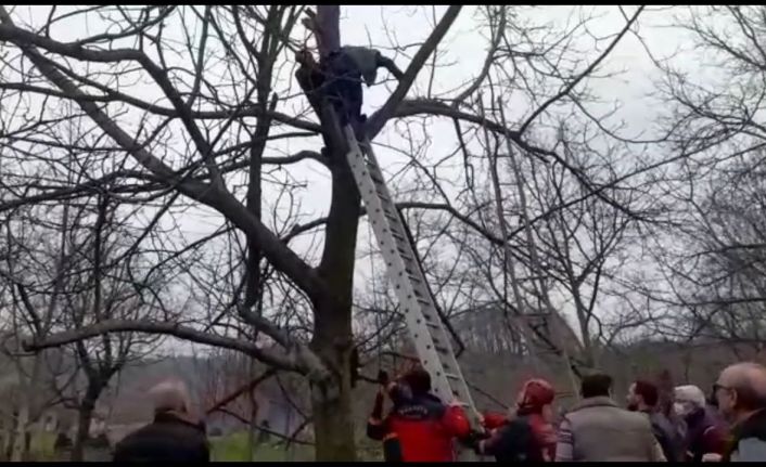 Sakarya’nın Sapanca ilçesinde budadığı ağacın dalı çarpan vatandaş fenalaşarak ağaçta mahsur kaldı. Ağaçta fenalaşan vatandaşın yardımına itfaiye ekipleri koştu.