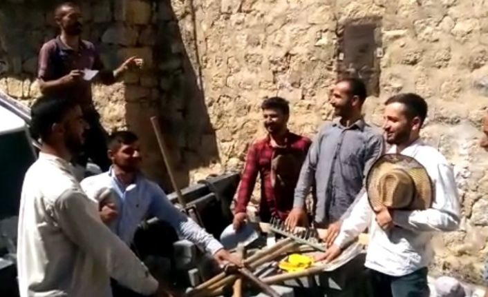 İşçiler gittikleri her köyde kullandıkları malzemelere el basarak yeminlerini ettikten sonra halay çekerek işlerine başlıyor.