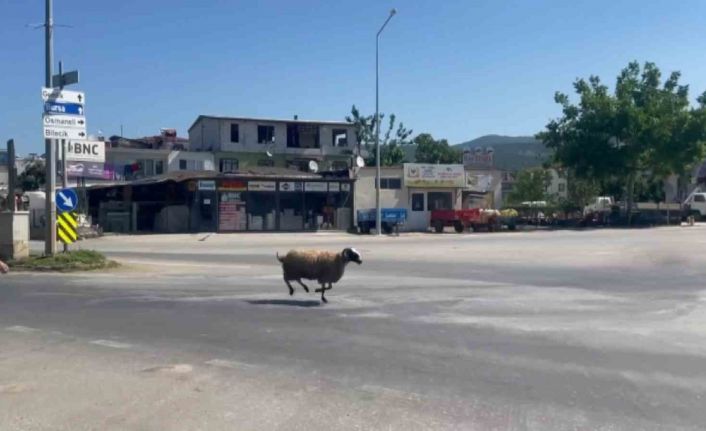 Bursa’nın İznik ilçesinde kurbanlık koç kesileceği anda vatandaşların ellerinde kaçtı. Birden ana caddeye çıkan koçun o anları kameraya yansıdı.