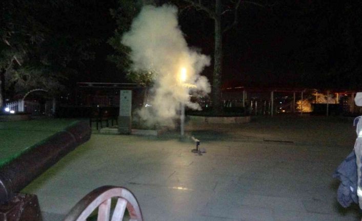 Bursa’da iftar saatinde ve sahurda kullanılan top atışı yerini ses bombasına bıraktı. Top bombaları çevre kirliliğine yol açması ve ayrıca ses bombasının daha pratik ve kullanışlı olması sebebiyle, sahur ve iftar saatinde itfaiye ekipleri Tophane’de ses bombası patlatıyor.