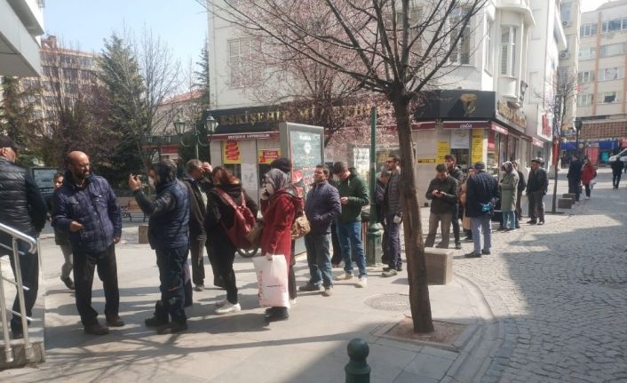 Çalışma süresi 5 saate düşen bankaların önünde açılışı bekleyen vatandaşlar uzun kuyruklar oluşturdu. Eskişehir’de banka sırası bekleyenlerin arasında yaşlı vatandaşların olması ihtimaline karşın banka yetkilileri 65 yaşın üzerindeki vatandaşlara işlem yapılmayacağını duyurdu.