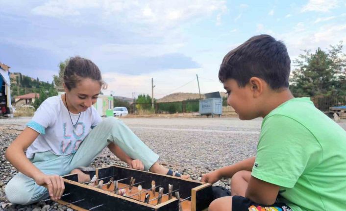 Malatya’nın Doğanşehir ilçesinde çamaşır mandalı ve şişten langırt yapan 11 yaşında kız çocuğu, kardeşleriyle oyun oynayarak keyifli vakit geçiriyor.