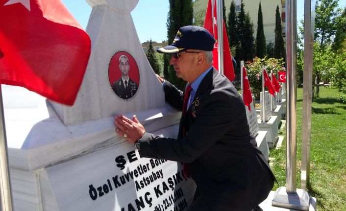 Fırat Kalkanı operasyonunda DAEŞ tarafından kaçırılan ve 40 gün sonra şehadet haberi gelen Çanakkaleli Piyade Astsubay Üstçavuş Kıvanç Kaşıkçı’nın Esenler Mahallesi’nde yer alan Hastane Bayırı Şehitliği’ndeki mezarına gelen baba Ramazan Kaşıkçı, burada dualar okuyup, mezarlığın temizlik bakımını gerçekleştirdi.