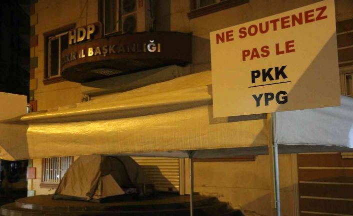 Diyarbakır’da, terör örgütü PKK tarafından kaçırılan çocukları için HDP binası önünde evlat nöbeti tutan ailelerden Celil Begdaş, çadır kurarak gece boyunca evlat nöbetini sürdürüyor.