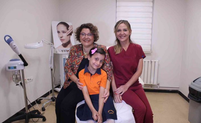 İzmir’de alopesi universalis hastalığı nedeniyle saç, kirpik ve kaşları olmayan 7 yaşındaki Ceylin Ar, Dokuz Eylül Üniversitesi (DEÜ) Hastanesi Tıbbi Estetik ve Kozmetoloji Biriminde ilk kez kendisine uygulanan tedavi ile saçlarına kavuştu. En büyük hayalinin pembe toka takmak olduğunu söyleyen minik Ceylin’in pembe tokasını birim sorumlusu Prof. Dr. Emel Çalıkoğlu ve hemşire Emine Aydoğan taktı.