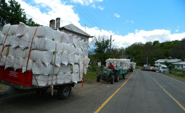 Güneydoğu illerinden tırlarla getirilen samanlar Posof’ta adeta kapışılıyor. Çuvallara doldurulmuş samanlar tonu bin 400 liradan satılıyor.