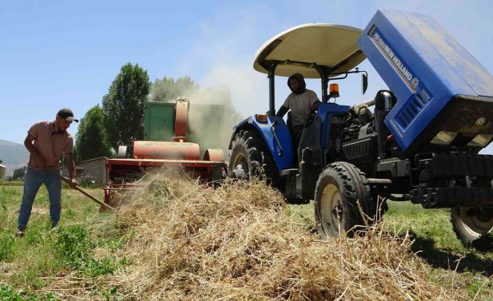 Muş’ta kavurucu sıcağa rağmen sabahın erken saatlerinde işe koyulan çiftçiler, günün en sıcak saatinde biçtikleri otları patoza vererek, kış mevsimi için hazırlıklara başladı. Bir taraftan tırmık ile otları toplayan köylüler, diğer taraftan da topladığı ürünü traktörün arkasına bağladıkları patoza atarak, saman haline dönüştürüyor. Çiftçiler, elde ettikleri samanı muhafaza ederek, kış mevsiminde kar üzerinde hayvanların beslenmesinde kullanıyor.