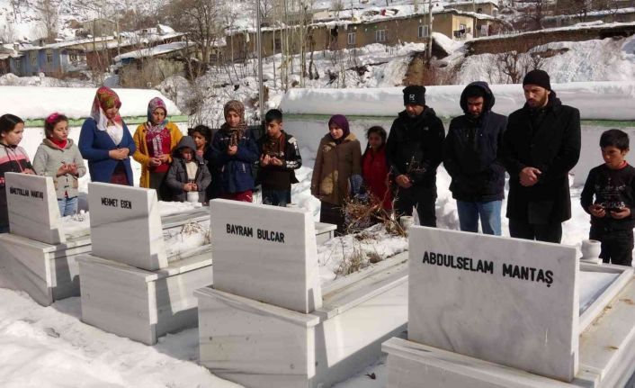 Bahçesaray yolundaki 3 bin rakımlı Karabet Geçidi’nde 2020 yılında ilki 4 Şubat, ikincisi ise 5 Şubat’ta meydana gelen çığ faciasında 11’i asker 42 kişi şehit olmuştu. 84 kişinin de kar yığınından yaralı olarak kurtarıldığı çığ faciasının ikinci yıldönümünde anma programları düzenleniyor. Şehit güvenlik korucularının yakınları mezarlarının bulunduğu Çatak ilçesine bağlı Alacayır Mahallesi Çermik mezrasında toplandı. Şehit yakınları mezar başında Kur’an-ı Kerim okuyup dua etti. Çığda şehit olan aynı aileden kuzen olan Metin, Abdulselam, Nimettullah Mantaş, Bayram Bulcar ve Mehmet Esen’in mezarının başında dua okuyan çocukları ve yakınları derin üzüntü yaşadı.