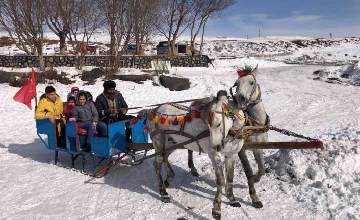 Göl üzerinde atlı kızakçılık yapan Ufuk Ada, “Okulların tatil olmasının ardından biz de nasıl çocuklara faydamız olur diye düşündük. Sonrasında arkadaşlarla birlikte özellikle takdir ve teşekkür alan öğrencileri ücretsiz olarak göl üzerinde gezdirelim dedik. Bayağı da ilgi gördü. İnşallah çocuklarımız iyi okur, başarılı olurlar bizler de onları hep ücretsiz gezdirip eğlendiririz’’ dedi.