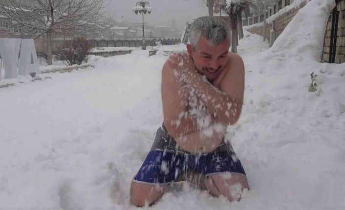 ‘Çılgın dönerci’nin kar banyosu