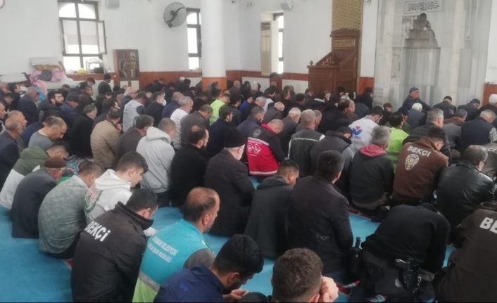 İmamın okuduğu hutbeyi dinleyen cemaat, namazdan sonra depremde hayatını kaybedenler için dua etti.