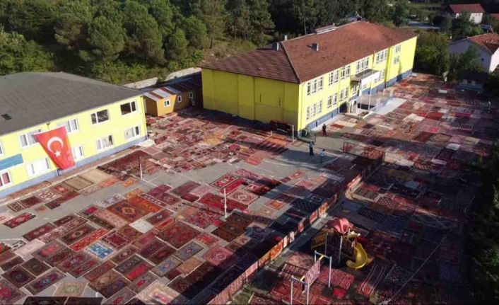 Zonguldak’ın Çaycuma ilçesi Karapınar beldesinde faaliyet gösteren tekstil fabrikası sahibi Gökhan Gözbaşı, dedesinden miras kalan dokuma halı ve kilimleri çocuklarına miras bırakacak. 3 bine yakın halı ve kilimi her yıl sererek havalandıran Gözbaşı, bakımı masraflı olmasına rağmen hobisini sürdürüyor. Gözbaşı’nın bir okulun bahçesine havalanması için serdiği halı ve kilimler dron ile havadan görüntülendi.