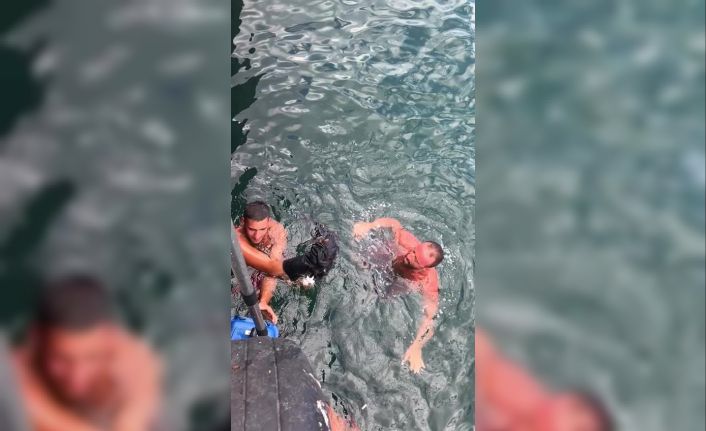 Bursa’nın Gemlik sahilinde denize düşerek yorgun ve bitkin şekilde mahsur kalan kediyi, cankurtaran ekibi çıkardı. Kurtarma anları amatör kamera ile kaydedildi.