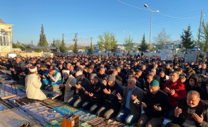 Depremde hasar gördüğü için Adıyaman Belediyesi Yeni Mezarlık Camii’nde bayram namazı dışarıda kılındı. Binlerce kişi sabah saat 06.30’da kılınan namaza katılarak, ellerini dua için semaya açtı.