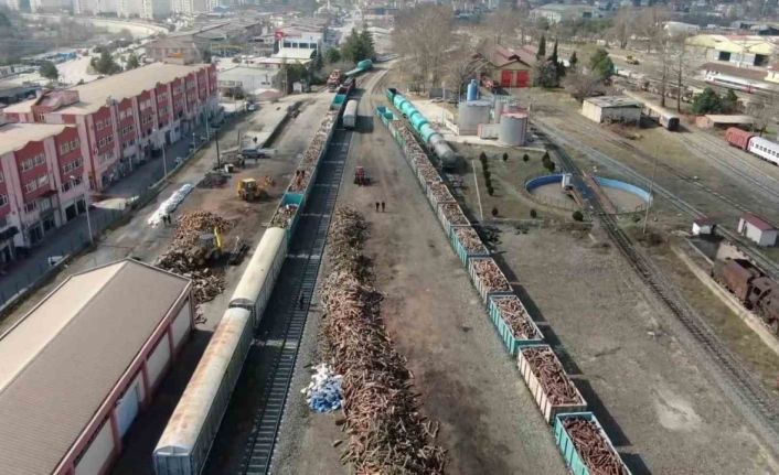 Kahramanmaraş merkezli 11 ili etkileyen iki büyük depremin ardından bölgedeki vatandaşların yakıt ihtiyaçlarının karşılanması için toplanan bin 350 ster odun, Karabük’ten demir yoluyla ulaştırılmak üzere vagonlara yüklendi.