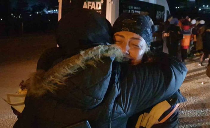 AFAD personelleri, araçtan inerek arkadaşları ve aileleriyle kavuşmanın sevincini yaşarken gözyaşlarına hakim olamadı.