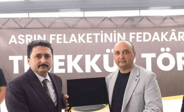 Deprem bölgesine giden gönüllülere ve destek olanlara teşekkür plaketi verildi