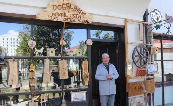 DEPREMDE EVİ HASAR ALAN MİKAİL FIRAT, AHŞAP ATÖLYESİNDE HEM SANATINI İCRA EDİYOR HEM DE YAŞAMINI SÜRDÜRÜYOR.