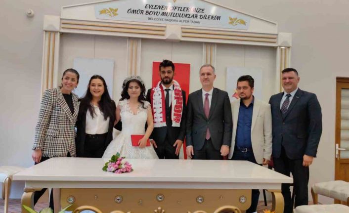 Hatay’da yıkılan evlerinin balkonundan ailesiyle atlayarak kurtulan Mustafa Girente, geldikleri Bursa’nın İnegöl ilçesinde yardımseverlerin desteğiyle düzenlenen törende, depremzede olan sevgilisi Güldez Taştekin ile dünyaevine girdi.