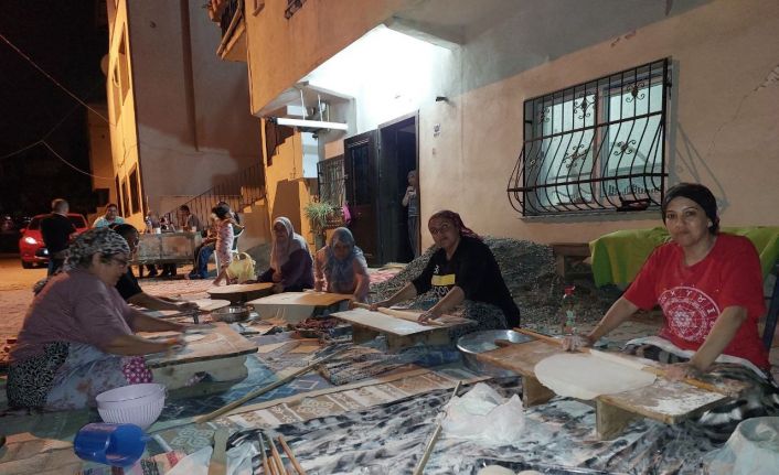 Depremin vurduğu Hatay’ın Payas ilçesinde Kurban Bayramı hazırlığı yapan kadınlar, imece usulü yufka ekmek pişirdi.