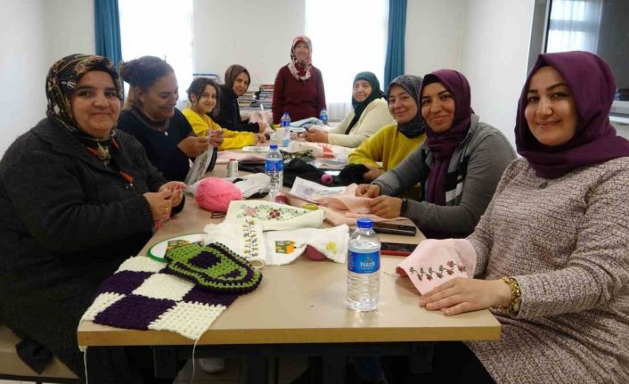 Kahramanmaraş merkezli depremlerin ardından farklı şehirlere yerleşerek yurtlarda konaklayan depremzedelere yönelik çalışmalar devam ediyor. Öğrenci ve çocukların ardından kadın depremzedelere için açılan kurslarda, kadınlar el nakışı yaparak depremin izlerini unutmaya çalışıyor. Halk Eğitim Merkezi bünyesinde açılan el nakışı kursunda yaklaşık 15 depremzede kadın etamin, iğne oyası, lif örgü, tığ örgü yaparak vakit geçiriyor.