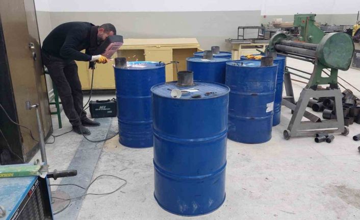 Tekirdağ’da meslek lisesi öğretmenleri ve sanayi esnafı ustaları güçlerini birleştirip, depremzedeler için varilden soba üretiyor.