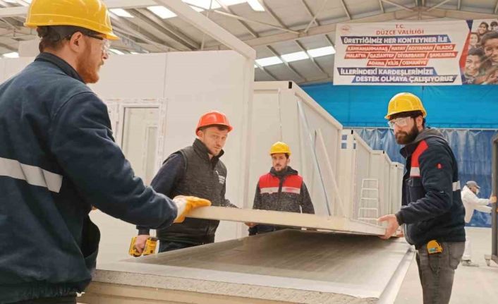 Kahramanmaraş merkezli meydana gelen depremin ardından bölgedeki barınma sorununun ilk etapta giderilmesi için Düzce Valiliği ve Özel İdare işbirliği ile konteyner üretim çalışmaları devam ediyor. Vali Cevdet Atay üretimin başladığı günden bu yana deprem bölgesine bin konteyner gönderildiği belirtti.