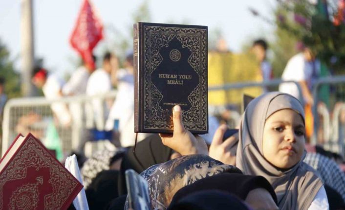 Merkez Yenişehir ilçesi İstasyon Meydanı’nda Vakıf tarafından organize edilen mitinge binlerce kişi ellerinde Kur’an-ı Kerim ile katıldı. Tekbirlerin atıldığı mitingde, Kur’an-ı Kerim tilavetinin ardından ilahiler okundu ve konuşmalar yapıldı.