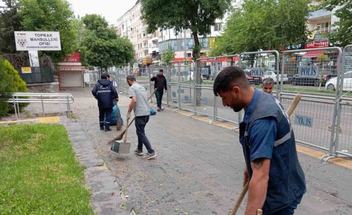 Çöplerin dağılmasıyla birlikte sokaklarda ve caddelerde temizlik yapan görevliler çöpleri zorlukla toplayabildi.
