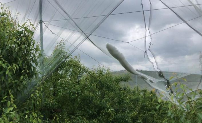 Bursa’da doluya karşı bahçelerine file geren çiftçiler, mahsullerini doludan korudu.