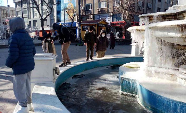 Tekirdağ Çorlu’da sıfırın altına düşen dondurucu soğukta Cumhuriyet Meydandaki havuz buz tuttu. Vatandaşların ilgi duymasının yanı sıra özellikle çocukların buz tutan havuzda oyun yapma isteği tehlikeye davetiye çıkardı.