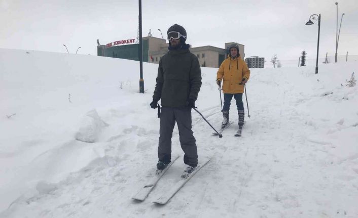 Elazığ İpekyolu Uluslararası Çocuk ve Gençlik Çalışmaları Merkezi’nde hem yürüyüş yolu hem de drone pisti olarak kullanılan 4 kilometrelik alan kar yağınca kayak pistine döndü. Alana akın eden öğrenciler, karın tadını çıkardı.