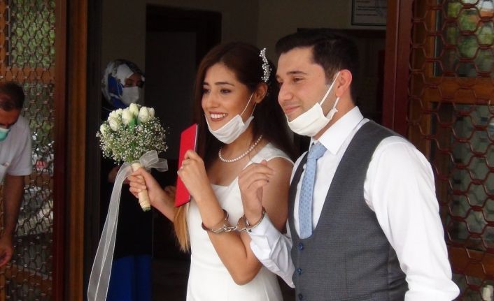 Düğün hediyesi olarak kelepçe taktı