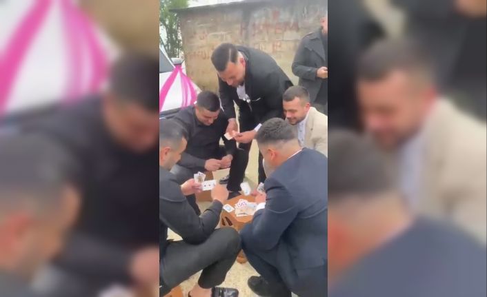 Rize’de 4 arkadaş düğün konvoyunun önünü kesme amaçlı iskambil oynayarak damattan bahşiş aldı.