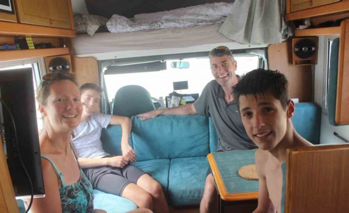 Dünya turuna çıkan Fransız aile, kamp yaptıkları Acıgöl’de yüzdü