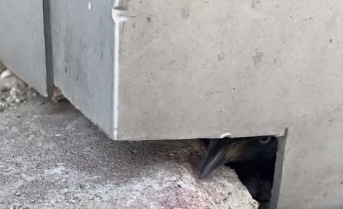 Durumu fark eden esnaflardan Erkan Değirmenci, kargayı kurtarmak için kompozit döşemeyi matkap ile söktü. Mahsur kalan karga, kompozitin sökülmesiyle uçarak uzaklaştı.