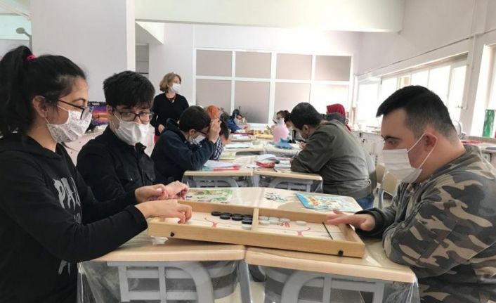 Elazığ Halk Eğitim Merkezi bünyesinde açılan el sanatları kursunda, hafif düzey engeli bulunan ve Down Sendromlu öğrenciler hem üretiyor hem de soysal aktivitelerini geliştirerek eğleniyor.