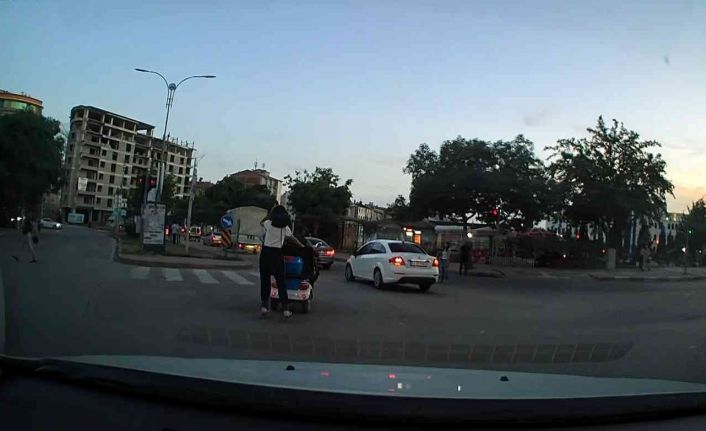 Olay, kentin en işlek caddesi olan Gazi Caddesi ile Vali Fahribey Caddesi arasında meydana geldi. Elektrikli bisikletin arkasına tutunarak giden kız, bir süre kırmızı ışıkta bekledikten sonra tehlikeli yolculuğuna devam etti. Kızın, pateniyle trafiğin yoğun olduğu bölgede bisikletin arkasına tutunarak yolculuk etmesi görenleri şaşkına çevirdi.
