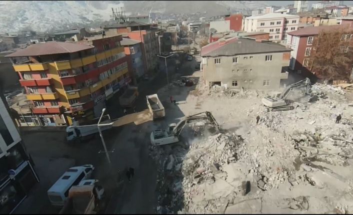 Boydan boya yıkılan caddelerde oluşan moloz yığınları, çok sayıda iş makinesi ve kamyonlarla döküm alanlarına taşınıyor. Enkaz kaldırma çalışmalarının en kısa sürede tamamlanması bekleniyor.