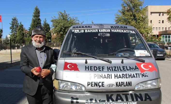 Bütün Türkiye’nin içinden ve dışından Suriye’deki üs birlikleri de dahil, Elmacı Dede’sini tanımayan yer yok ifadelerini kullanan Elmacı Dede Muhammet Yılmaz, “Çünkü bütün nerede operasyon varsa terör operasyonu Elmacı Dede orada manevi destek vermek amacıyla bulunur. 2 bahçenin bir tanesini, bahçenin elmalarını komple askeri birliklerimize, hudut bölgelerindeki ve Suriye’deki üs birliklerimize ikram ediyorum. Manevi güç, manevi destek vermek amacıyla. Çünkü hedefim Kızılelma. Hedefin Kızılelma olması işte böyle bir şey” dedi.